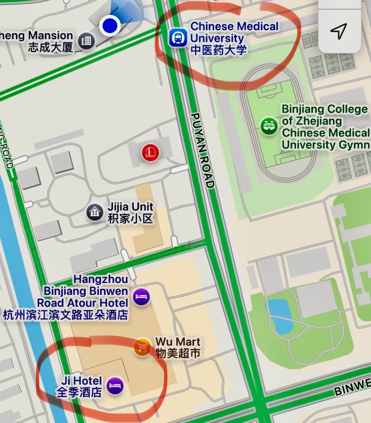 Lage von Hotel und Universität, im Zentrum von Hangzhou