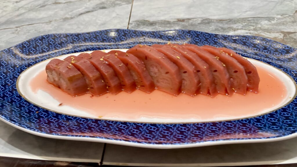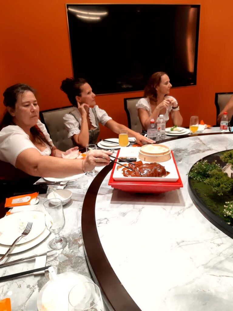 Erstes gemeinsames Abendessen am „Round Table“. Großartige Köstlichkeiten und unglaublich schöne Speisen